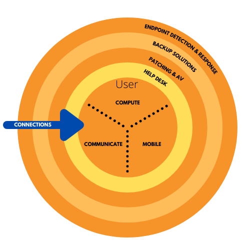 - endpoint detection and monitoring – This always on service monitors every machine for “unusual” activity relative to what it has seen in the past, and if it sees anything fishy going on, it quarantines the affected files and gets a security specialist involved to sort through the activity. This is one of the highest levels of protection because even the newest, most novel type of intrusion is likely to be detected.